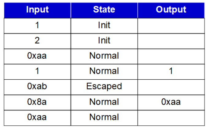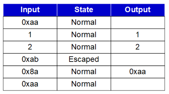Example 2 - In this example, there is some data prior to the first flag (delimiter byte). It can be treated as junk. So what would be the outputs if the data below is received: